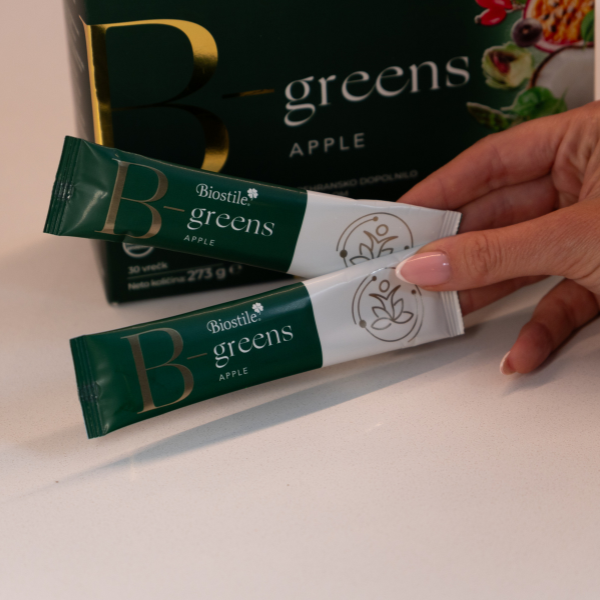 B-Greens łączy w sobie starannie dobrane ekstrakty roślinne, postbiotyki, witaminy i minerały, które wspierają trawienie, pomagają w naturalnej detoksykacji wątroby i przyczyniają się do zwiększenia energii. Składniki takie jak inulina, spirulina, chlorella, karczoch i ostropest plamisty wspomagają lepsze wchłanianie składników odżywczych i poprawę ogólnego samopoczucia.